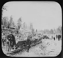 The first railway projects in Siberia emerged after the completion of the Saint Petersburg–Moscow Railway in 1851.[12] One of the first was the Irkutsk–Chita project, proposed by the American entrepreneur Perry Collins and supported by Transport Minister Constantine Possiet with a view toward connecting Moscow to the Amur River, and consequently the Pacific Ocean. Siberia's governor, Nikolay Muravyov-Amursky, was anxious to advance Russian colonization of the now Russian Far East, but his plans were unfeasible due to colonists importing grain and food from China and Korea.[13] It was on Muravyov's initiative that surveys for a railway in the Khabarovsk region were conducted.