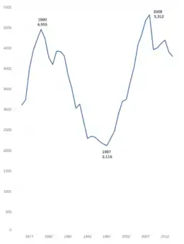 Between 2008 and 2011, the economic recession, by a reduction in distance traveled, contributed to reducing fatalities.[9]