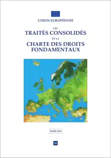 ![]() Front page of an EU document containing the consolidated treaties and documents which comprise the legal basis of the EU | |