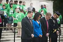 On August 7, 2018, the Honolulu Star-Advertiser reported that the Hawaii Army National Guard had instructed Gabbard that a video of her in uniform on her VoteTulsi Facebook page did not comply with military ethics rules. Gabbard's campaign removed the video and added a disclaimer to the website's banner image of Gabbard in uniform in a veterans' cemetery that the image does not imply an endorsement from the military. A similar situation happened during a previous Gabbard congressional campaign. A spokeswoman for Gabbard said the campaign would work closely with the Department of Defense to ensure compliance with all regulations.[77] In October 2020, Gabbard left the Hawaii Army National Guard to join the Army Reserve with a California-based unit.[78] On July 4, 2021, Gabbard was promoted to the rank of lieutenant colonel.[79]