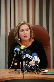 Tziporah Malka "Tzipi" Livni (Hebrew: ציפי (ציפורה) מלכה לבני, pronounced [tsipoˈʁa malˈka ˈtsipi ˈlivni]; born 8 July 1958) is an Israeli politician, diplomat, and lawyer. A former member of the Knesset and leader in the center-left political camp, Livni is a former foreign minister of Israel, vice prime minister, minister of justice, and Leader of the Opposition. She is known by some for her efforts to resolve the Israeli–Palestinian conflict.