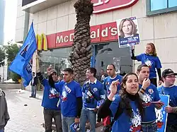 Livni voiced support for Israel's gay community ahead of Gay and Lesbian Pride Month in June 2009. She addressed an event held at the gay community's municipal center in Tel Aviv's Meir Park.[76][77] After a 1 August 2009 attack on a gay youth center that left two people dead and 15 wounded in Tel Aviv, Livni, who is in contact with the gay and lesbian community, said "This event should shake up society, and all the circles inherent in it, including the political establishment and the education system, and on this day deliver an unequivocal message against intolerance, incitement and violence, and to act against any manifestation of these." She attended a rally near the location of the attack, along with hundreds of Israelis and some other politicians, and urged Israel's gay and lesbian community to continue living their lives, despite the "hate crime."[78] Livni opposed Netanyahu's land reform bill.[79]