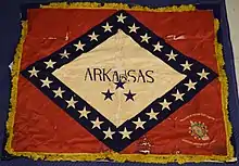 ![]() Arkansas Flag presented to USS Arkansas in 1913 after its restoration |