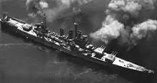 At the end of October, Wichita was assigned to Task Group 34.1, under the command of Rear Admiral H. Kent Hewitt, who flew his flag in Augusta.[5] The Task Group also included the battleship Massachusetts and Tuscaloosa.[21] The ships were assigned to provide gunfire support for Operation Torch, the invasion of French North Africa. Wichita participated in the Naval Battle of Casablanca, which began early on the morning of 8 November. The ships were tasked with neutralizing the primary French defenses, which included coastal guns on El Hank, several submarines, and the incomplete battleship Jean Bart which lay at anchor in the harbor. Wichita and Tuscaloosa initially engaged the French batteries on El Hank and the French submarine pens, while Massachusetts attacked Jean Bart. French naval forces, led by the cruiser Primauguet, put up a stubborn defense.[22][23]