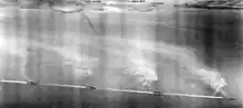 On 19 July, a powerful American fleet, including the battleships New Mexico, Idaho, and Mississippi joined Wichita to conduct another attack on Kiska three days later.[32] Five days later, malfunctioning radar equipment led to a battle with radar phantoms (the "Battle of the Pips"); Wichita, two battleships, and two other cruisers expended over a thousand rounds of ammunition from their main batteries on the empty sea. That same day, the Japanese successfully evacuated the island, which was invaded by American troops two weeks later.[30] The morning after the assumed engagement, Wichita launched a seaplane to reconnoiter the area, but found no evidence of Japanese forces.[33]