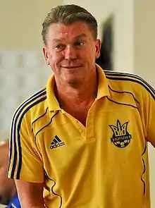 On 21 April 2011, Blokhin was again appointed head coach of the Ukraine national team signing a four-year contract.[21][22] With Blokhin at helm in their opening game against Sweden, Ukraine won 2–1 in Kyiv. In Donetsk, Ukraine was eliminated after a 2–0 loss to France and a 1–0 defeat to England.