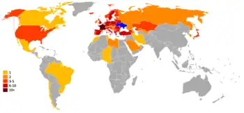 | Total: 71 nations | 5/6 | 303 | 139 | 86 | 80 | 423 | 259 | +164 |