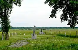 Minority opinions among historians of Ukrainians in Canada surround theories that a small number of Ukrainians settled in Canada before 1891. Most controversial is the claim that Ukrainians may have been infantrymen alongside Poles in the Swiss French “De Watteville's Regiment” who fought for the British on the Niagara Peninsula during the War of 1812 – it has been theorized that Ukrainians were among those soldiers who decided to stay in Upper Canada (southern Ontario).[17] Other Ukrainians supposedly arrived as part of other immigrant groups; it has been claimed that individual Ukrainian families may have settled in southern Manitoba in the mid- to late 1870s alongside block settlements of Mennonites and other Germans from the Russian Empire.[17] "Galicians" are noted as being among the miners of the British Columbia gold rushes and figure prominently in some towns in that new province's first census in 1871 (these may have been Poles and Belarusians as well as Ukrainians).[18] Because there is so little definitive documentary evidence of individual Ukrainians among these three groups, they are not generally regarded as among the first Ukrainians in Canada.