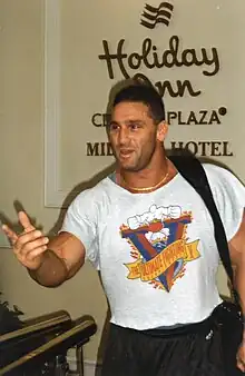 UFC 40 proved to be the most critical event to date in the Zuffa era. The event was a near sellout of 13,022 at the MGM Grand Arena and sold 150,000 pay-per-view buys, a rate roughly double that of the previous Zuffa events. The event featured a card headlined by a championship match between then-current UFC Light Heavyweight Champion Tito Ortiz and former UFC Superfight Champion Ken Shamrock, who had previously left to professional wrestling in the WWE before returning to MMA. It was the first time the UFC hit such a high mark since being forced "underground" in 1997.[56] UFC 40 also garnered mainstream attention from media outlets such as ESPN and USA Today, something that was unfathomable for mixed martial arts at that point in time.[57] Many have suggested that the success of UFC 40 and the anticipation for Ortiz vs. Shamrock saved the UFC from bankruptcy; the buyrates of the previous Zuffa shows averaged a mere 45,000 buys per event, and the company was suffering deep monetary losses.[57] The success of UFC 40 provided a glimmer of hope for the UFC, and kept alive the hope that mixed martial arts could become big.[58] Beyond the rivalry itself, the success of UFC 40 was due in part to the marketing and outreach power of crossover athletes – from Pro Wrestling to MMA and MMA to Pro Wrestling – a practice with roots in Japan's Pride Fighting Championships.[59] Long time UFC referee John McCarthy said that he felt UFC 40 was the turning point in whether or not the sport of MMA would survive in America.