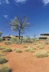 The Aboriginal community of Mutitjulu is inside the park area, but tourists must stay at the resorts in Yulara, just outside the national park. Ayers Rock Resort in Yulara offers a range of accommodation from camp sites to five-star luxury. There are also several dining options, a supermarket and a range of tour operators. The national park and town are served by Connellan Airport.