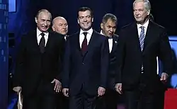 According to the decisions of the XII Congress of United Russia, adopted on 24 September 2011, in the Duma elections, the party's pre-election list was headed by the President of the Russian Federation at the time, Dmitry Medvedev,[42][43] and in the 2012 elections, Vladimir Putin became the presidential candidate.[44]
