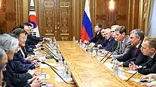 - "민주, 통합러시아당과 정당협력의정서 체결…정보교류 제도화". 연합뉴스. 14 December 2017. Retrieved 4 December 2022.