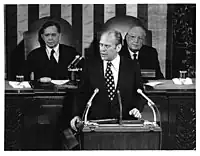 The 25th Amendment's mechanism for filling vice presidential vacancies has reduced the likelihood that the House speaker, Senate president pro tempore, or any cabinet member will need to serve as acting president.[10] In October 1973, the resignation of Vice President Spiro Agnew made House Speaker Carl Albert first in line to succeed President Richard Nixon – but only briefly, as Gerald Ford was sworn in as vice president on December 6, 1973.[50] On August 9, 1974, Nixon resigned the presidency, making Ford president; Albert was then again next in line, but only for the four months it took for Nelson Rockefeller to be nominated and confirmed as Ford's vice president.[8]
