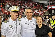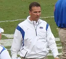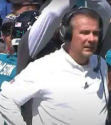 Urban Frank Meyer III (born July 10, 1964) is a college football TV commentator and former American football coach. He spent most of his coaching career at the collegiate level, having served as the head coach of the Bowling Green Falcons from 2001 to 2002, the Utah Utes from 2003 to 2004, the Florida Gators from 2005 to 2010,[1] and the Ohio State Buckeyes from 2012 to 2018.[2] He retired from coaching in 2019 at the end of the Rose Bowl, and stayed at Ohio State as an assistant athletic director and was also an analyst for Fox Sports, appearing weekly on their Big Noon Kickoff pregame show. In 2021, Meyer came out of retirement to take his first National Football League (NFL) job as head coach of the Jacksonville Jaguars, but was fired 13 games into his first and only season, after going 2–11 and being involved in both on- and off-field controversies. He then went back to Fox Sports to resume his broadcasting career.