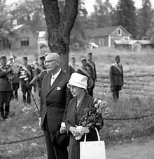 The second time the Soviets helped Kekkonen was in the Note Crisis in 1961. The most widely held view of the Note Crisis is that the Soviet Union acted to ensure Kekkonen's reelection. Whether Kekkonen himself had organized the incident and to what extent remains debated. Several parties competing against Kekkonen had formed an alliance, Honka-liitto, to promote Chancellor of Justice Olavi Honka, a non-partisan candidate, in the 1962 presidential elections.[22] Kekkonen had planned to foil the Honka-liitto by calling an early parliamentary election and thus forcing his opponents to campaign against each other and together simultaneously. However, in October 1961, the Soviet Union sent a diplomatic note proposing military "consultations" as provided by the Finno-Soviet Treaty. As a result, Honka dropped his candidacy, leaving Kekkonen with a clear majority (199 of 300 electors) in the 1962 elections. In addition to support from his own party, Kekkonen received the backing of the Swedish People's Party and the Finnish People's Party, a small classical liberal party. Furthermore, the conservative National Coalition Party quietly supported Kekkonen, although they had no official presidential candidate after Honka's withdrawal.[20] Following the Note Crisis, genuine opposition to Kekkonen disappeared, and he acquired an exceptionally strong—later even autocratic—status as the political leader of Finland.