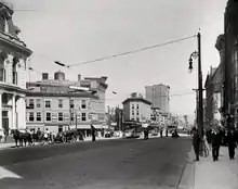 West Utica (or the West Side) was historically home to German, Irish and Polish immigrants. The Corn Hill neighborhood in the city center had a significant Jewish population.[101] East Utica (or the East Side) is a cultural and political center dominated by Italian immigrants.[102][103] North of downtown is the Triangle neighborhood, formerly home to the city's African American and Jewish populations.[32] Neighborhoods formerly dominated by one or more groups saw other groups arrive, such as Bosnians and Latin Americans in former Italian neighborhoods and the historically Welsh neighborhood of Corn Hill.[32] Bagg Commemorative Park and Bagg's Square West (Utica's historic centers) are in the northeastern portion of downtown, with Genesee Street on the west and Oriskany Street on the south.[97]