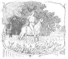 Later in the book, various kennings are given for Víðarr, including again the "silent As", "possessor of the iron shoe", "enemy and slayer of Fenrisulf", "the gods' avenging As", "father's homestead-inhabiting As", "son of Odin", and "brother of the Æsir".[11] In the tale of the god Thor's visit to the hall of the jötunn Geirröd, Gríðr is stated as the mother of "Víðarr the Silent" who assists Thor in his journey.[12] In chapter 33, after returning from Asgard and feasting with the gods, Ægir invites the gods to come to his hall in three months. Fourteen gods make the trip to attend the feast, including Víðarr.[13] In chapter 75, Víðarr's name appears twice in a list of Æsir.[14]