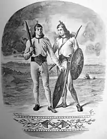 According to Skáldskaparmál, Víðarr was one of the twelve presiding male gods seated in their thrones at a banquet for the visiting Ægir.[9] At a point in dialogue between the skaldic god Bragi and Ægir, Snorri himself begins speaking of the myths in euhemeristic terms and states that the historical equivalent of Víðarr was the Trojan hero Aeneas who survived the Trojan War and went on to achieve "great deeds".[10]