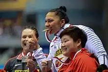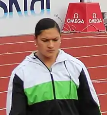 Dame Valerie Kasanita Adams DNZM (formerly Vili; born 6 October 1984) is a retired New Zealand shot putter. She is a four-time World champion, four-time World Indoor champion, two-time Olympic, three-time Commonwealth Games champion and twice IAAF Continental Cup winner. She has a personal best throw of 21.24 metres (69.7 ft) outdoors and 20.98 metres (68.8 ft) indoors. These marks are Oceanian, Commonwealth and New Zealand national records. She also holds the Oceanian junior record (18.93 m) and the Oceanian youth record (17.54 m), as well as the World Championships record, World Indoor Championships record and Commonwealth Games record.