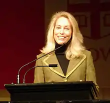 Presenting a lecture on her book Fair Game, at Brown University, in Providence, Rhode Island, on December 4, 2007.