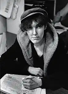 ![]() Solanas in the Village Voice newsroom, 1967, by Fred W. McDarrah | |