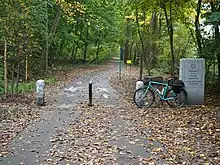 The rails themselves were overrun with weeds, but they were no longer usable by trains.[219] The remains of the former Van Cortlandt Park station can be seen along the trail.[2] As part of the park's 2034 master plan, NYC Parks undertook a project to pave the entirety of the trail through Van Cortlandt Park as well as a short extension to the south, making it usable for both pedestrians and bicyclists.[220] A construction contract for the paving project was awarded in October 2018 to Grace Industries, and it was completed in October 2020.[221][222]