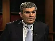 Vazgen Zaveni Sargsyan[1] (Armenian: Վազգեն Զավենի Սարգսյան, pronounced [vɑzˈɡɛn zɑvɛˈni sɑɾkʰəsˈjɑn]; 5 March 1959 – 27 October 1999) was an Armenian military commander and politician. He was the first Defence Minister of Armenia from 1991 to 1992 and then from 1995 to 1999. He served as Armenia's Prime Minister from 11 June 1999 until his assassination on 27 October of that year. He rose to prominence during the mass movement for the unification of Nagorno-Karabakh with Armenia in the late 1980s and led Armenian volunteer groups during the early clashes with Azerbaijani forces. Appointed defence minister by President Levon Ter-Petrosyan soon after Armenia's independence from the Soviet Union in late 1991, Sargsyan became the most prominent commander of Armenian forces during the First Nagorno-Karabakh War.[2] In different positions, he regulated the military operations in the war area until 1994, when a ceasefire was reached ending the war with Armenian forces controlling almost all of Nagorno-Karabakh and seven surrounding districts.