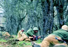 Due to the fact that Sargsyan was popular among Armenian volunteer units and army officers,[20] he was appointed the first Defense Minister of independent Armenia by President Ter-Petrosyan in December 1991.[6][21] On 28 January 1992, the Armenian government passed the historical decree "On the Ministry of Defense of the Republic of Armenia," which formally created the Armed Forces of Armenia.[22][23] With the rise of hostilities in Nagorno-Karabakh, in March 1992, Sargsyan announced that Armenia needed a 30,000-strong army for maintaining security.[24] On 9 May 1992, the Armenian forces recorded their first major military success in Nagorno-Karabakh with the capture of Shusha. Another significant victory for the Armenian forces was recorded weeks later with the capture of Lachin,[25] which connects Armenia proper with Nagorno-Karabakh.[26]