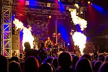 Venom are an English heavy metal band formed in Newcastle upon Tyne in 1978.[1] Coming to prominence towards the end of the new wave of British heavy metal, Venom's first two albums, Welcome to Hell (1981) and Black Metal (1982), are considered major influences on thrash metal and extreme metal in general.[1] Their second album proved influential enough that its title was used as the name of the black metal genre; as a result, Venom were part of the early wave of the genre, along with Mercyful Fate and Bathory.[2][3]