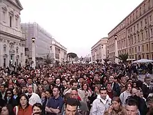 Via della Conciliazione (Road of the Conciliation[1]) is a street in the Rione of Borgo within Rome, Italy. Roughly 500 metres (1,600 ft) in length,[2] it connects Saint Peter's Square to the Castel Sant'Angelo on the western bank of the Tiber River. The road was constructed between 1936 and 1950, and it is the primary access route to the Square. In addition to shops, it is bordered by a number of historical and religious buildings – including the Palazzo Torlonia, the Palazzo dei Penitenzieri and the Palazzo dei Convertendi, and the churches of Santa Maria in Traspontina and Santo Spirito in Sassia.
