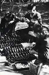 The North Vietnamese Communist Party approved a "people's war" on the South at a session in January 1959,[28]: 119–120 and, in May, Group 559 was established to maintain and upgrade the Ho Chi Minh trail, at this time a six-month mountain trek through Laos. On 28 July, North Vietnamese and Pathet Lao forces invaded Laos, fighting the Royal Lao Army all along the border. Group 559 was headquartered in Na Kai, Houaphan province in northeast Laos close to the border.[109]: 26 About 500 of the "regroupees" of 1954 were sent south on the trail during its first year of operation.[110] The first arms delivery via the trail was completed in August 1959.[111] In April 1960, North Vietnam imposed universal military conscription for adult males. About 40,000 communist soldiers infiltrated the south from 1961 to 1963.[56]: 76