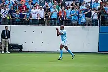 On 22 August 2008, Premier League club Manchester City signed Kompany from Hamburg on a four-year contract for an undisclosed fee.[12] He made his debut two days later in a 3–0 home win against West Ham United, playing the entire match.[13] On 28 September, Kompany scored his first goal in City's 2–1 away defeat by Wigan Athletic.[14] During his early time at Manchester City, Kompany played as a defensive midfielder.[15]