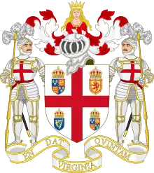 The Virginia Company was an English trading company chartered by King James I on 10 April 1606 with the object of colonizing the eastern coast of America. The coast was named Virginia, after Elizabeth I, and it stretched from present-day Maine to the Carolinas.[1][2][3] The company's shareholders were Londoners, and it was distinguished from the Plymouth Company, which was chartered at the same time and composed largely of gentlemen from Plymouth, England.[4][5][6][7]