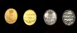 It is awarded in five classes either for personal heroism or, to commanders, for leadership.[4] Some of the heroic actions recognized by an award of the Virtuti Militari are equivalent to those meriting the British Victoria Cross,[5] the German Iron Cross, and the American Medal of Honor.[6]