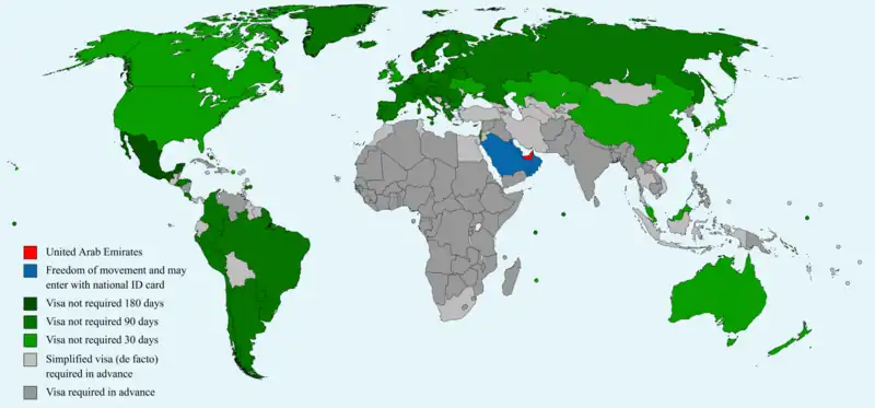 Citizens of member nations of the Gulf Cooperation Council have freedom of movement in the UAE.