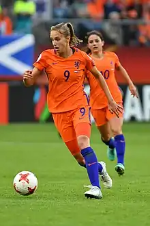Her younger brother, Lars, is also a footballer, who as of 2020 was playing for FC Den Bosch.[98] Known for her lack of interest in overtly celebrating her goals, she made a rare exception upon becoming the Netherlands' top scorer in 2019 after her brother insisted she mark the achievement.[98]