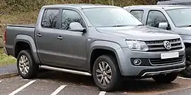 The Volkswagen Amarok is a pickup truck produced by Volkswagen Commercial Vehicles since 2010. It is a body-on-frame truck with double-wishbone suspension at the front and leaf springs at the rear.[1] The Amarok range consists of single cab and double cab, combined with either rear-wheel drive or 4motion four-wheel-drive, and is powered by turbocharged petrol or turbocharged direct injection (TDI) diesel engines.