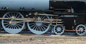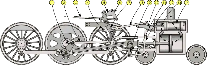 The Walschaerts valve gear is a type of valve gear used to regulate the flow of steam to the pistons in steam locomotives, invented by Belgian railway engineer Egide Walschaerts in 1844.[1] [2] The gear is sometimes named without the final "s",[lower-alpha 1] since it was incorrectly patented under that name. It was extensively used in steam locomotives from the late 19th century until the end of the steam era.