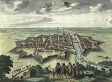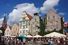 In year 1824, shortly before its merger with West Prussia, the population of East Prussia was 1,080,000 people.[4] Of that number, according to Karl Andree, Germans were slightly more than half, while 280,000 (~26%) were ethnically Polish and 200,000 (~19%) were ethnically Lithuanian.[5] As of year 1819 there were also 20,000 strong ethnic Kursenieki and Latvian minorities as well as 2,400 Jews, according to Georg Hassel.[6] Similar numbers are given by August von Haxthausen in his 1839 book, with a breakdown by county.[7] But the majority of East Prussian Polish and Lithuanian inhabitants were Lutherans, not Roman Catholics like their ethnic kinsmen across the border in the Russian Empire. Only in Southern Warmia (German: Ermland) Catholic Poles – so called Warmiaks (not to be confused with predominantly Protestant Masurians) – comprised the majority of population, numbering 26,067 people (~81%) in county Allenstein (Polish: Olsztyn) in 1837.[7] Another minority in 19th-century East Prussia, were ethnically Russian Old Believers, also known as Philipponnen – their main town was Eckersdorf (Wojnowo).[8][9][10]