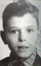 - Tsvi Chaim Nussbaum (de, fr) (1936–2012)[22] was born in Tel Aviv but his family returned to Poland before the war. He lived in hiding on the "Aryan" side of Warsaw. Since he and his family had valid Palestinian visas, they fell into the Hotel Polski trap in which the Germans promised safe passage out of occupied Europe. Liberated by American troops at Bergen-Belsen concentration camp in 1945, Nussbaum stated in 1982 that he had been arrested in front of the Hotel Polski on 13 July 1943 and forced to raise his arms as depicted. Although some Jewish organizations uncritically accepted this claim at the time it was made, it is not possible that Nussbaum was the boy in the photo.[19][20][14] Nussbaum himself never claimed to be certain about the identification, saying "I think it’s me, but I can’t honestly swear to it. A million and a half Jewish children were told to raise their hands".[10][19] Dobroszycki pointed out the discrepancies between Nussbaum's claim and what is known about the photograph. All images in the Stroop Report are believed to have been taken inside the Warsaw Ghetto, while the Hotel Polski is not in the ghetto. The Hotel Polski roundups occurred in a courtyard, while the photograph depicts a street. Most of the Jews in the photograph are wearing heavy clothing, which suggests that the photograph was not taken in July; they are wearing armbands that they would not have worn while in hiding on the "Aryan" side of the city. The Germans are wearing combat uniforms which they would not have needed at the Hotel Polski roundups. Furthermore, Nussbaum was arrested more than a month after the Stroop Report was delivered to Himmler.[19][20][23] A comparison with Nussbaum's 1945 photograph by forensic anthropologist K. R. Burns of the University of Georgia revealed that Nussbaum had detached earlobes, unlike the boy in the photograph.[10]