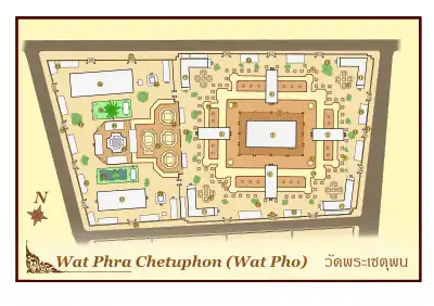 The sangkhawat (monks' quarters) of Wat Pho located to the south is not shown in this plan.