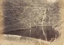 The area soon became a tourist attraction for the early South Australian colonists, and was a popular destination for picnickers. In 1851 Francis Clark wrote that "Waterfall Gully is the most picturesque place for a picnic that I have ever visited",[16] and by the 1860s the area had become known throughout Adelaide.[14] The use of Waterfall Gully as picnic spot was facilitated by the decision of the government of the day not to subdivide the area containing the waterfalls. Section 920, as it was designated, did not enter into private hands, and thus members of the public were able to access the area from the nearby suburb of Eagle on the Hill on Mount Barker road.[17] The position of the Eagle on the Hill hotel proved advantageous for this, as it permitted visitors to stop by for lunch before walking down the hill in the afternoon.[18]