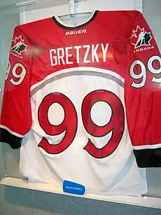 ![]() Team Canada sweater worn by Gretzky during the 1998 Winter Olympics. | ||