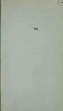 We (Russian: Мы, romanized: My) is a dystopian novel by Russian writer Yevgeny Zamyatin, written 1920–1921.[2] It was first published as an English translation by Gregory Zilboorg in 1924 by E. P. Dutton in New York, with the original Russian text first published in 1952. The novel describes a world of harmony and conformity within a united totalitarian state. It influenced the emergence of dystopia as a literary genre. George Orwell said that Aldous Huxley's 1931 Brave New World must be partly derived from We,[3] although Huxley denied this. Orwell's own Nineteen Eighty-Four (1949) was also inspired by We.[4]