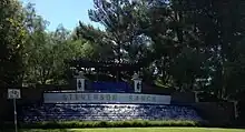 Exterior scenes for the first two seasons were shot almost exclusively in Stevenson Ranch, a suburban area of Santa Clarita Valley, California. The large fountain and Agrestic sign in the opening credits of the first three seasons was shot at the corner of Stevenson Ranch Parkway and Holmes Place.[17] The name "Stevenson Ranch" was digitally replaced with "Agrestic" (and with "Majestic" and "Regrestic" in later episodes). The overhead satellite view in the beginning of the credits in the first three seasons is of Calabasas Hills, a gated community in Calabasas, California. The shot of the It's A Grind coffee shop in the introduction (seasons one to three) is of an It's A Grind in Castaic, California.[18] The show was originally filmed at Red Studios, previously known as Ren-Mar studios.[19] The show moved to Universal Studios in Los Angeles for season seven, where it is noted on the studio tour. A version of this Wikipedia page served as the introduction for the season five episode titled "Where the Sidewalk Ends".