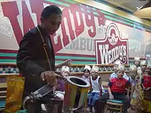 Thomas named the restaurant after his fourth child Melinda Lou "Wendy" Thomas.[10] Photographs of her were on display at the original Wendy's restaurant until it closed. In his autobiography, Thomas wrote that he regretted naming the restaurant after his daughter because once it became a fast food empire she "lost some of her privacy" with many people assuming she was the official company spokesperson.[11] In August 1972, the first Wendy's franchisee, L.S. Hartzog, signed an agreement for Indianapolis, Indiana.[12] Also, in 1972, Wendy's aired its first TV commercials that were only broadcast locally in Ohio. This series of commercials was titled "C'mon to Wendy's" because they stressed Wendy's superiority through the "Quality Is Our Recipe" slogan and featured an animated Wendy similar to the one from the corporate logo along with dancing hamburgers.