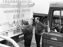Following the Berlin Blockade, normal contacts between East and West Berlin resumed. This was temporary until talks were resumed.[5] In 1952, the East German government began sealing its borders, further isolating West Berlin.[6] As a direct result, electrical grids were separated and phone lines were cut.[5] The Volkspolizei and Soviet military personnel also continued the process of blocking all the roads leading away from the city, resulting in several armed standoffs and at least one skirmish with the French Gendarmerie and the Bundesgrenzschutz that June.[6] However, the culmination of the schism did not occur until 1961 with the construction of the Berlin Wall.[5]