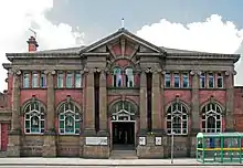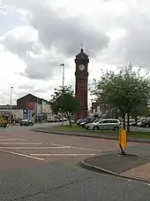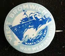 Initially a rural village, West Bromwich's growth corresponded with that of the Industrial Revolution, owing to the area's natural richness in ironstone and coal, as well as its proximity to canals and railway branches.[5] It led to the town becoming a centre for coal mining, brick making, the iron industry and metal trades such as nails, springs and guns. The town's primary economy developed into engineering, manufacturing and the automotive industry through the early 20th century.[6] During the Second World War, West Bromwich experienced bombing from the German Luftwaffe.[7][8] It also suffered heavily during recessions in the mid 1970s, early 1980s and late 2000s.[9]
