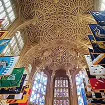 Under Henry VII, the 13th-century Lady Chapel (known as the "Henry VII Chapel" or the "Lady Chapel") was demolished and rebuilt in a Perpendicular Gothic style. Work was begun in 1503 and the chapel was finished c.1519.[48] Henry's original reason for building such a grand chapel was to have a place suitable for the burial of another saint alongside the Confessor, as he planned on having Henry VI canonised.[52] The Pope asked Henry VII for a large sum of money to achieve sainthood for his predecessor, which he was not willing to hand over, and so instead Henry VII is buried in the centre of the chapel with his wife, Elizabeth of York.[53]