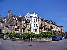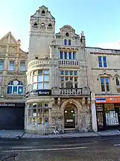 Much of the character of the buildings in the town derives from the use of local stone, much of it from the Town Quarry. Notable among the architects working in the 19th century was Hans Price (1835–1912). Many examples of his work are still to be seen: the Town Hall, the Mercury Office, the Constitutional Club (originally the Lodge of St Kew), villas and numerous other domestic dwellings. The Odeon Cinema by Thomas Cecil Howitt is notable for fully retaining many Art Deco features both internally and externally, and retaining its original theatre organ, a Compton from 1935. It is believed to be the only cinema organ in the West Country left working in its original location and is still in regular use.[26] Other organs by Compton in Weston-super-Mare can be found at Victoria Methodist Church and All Saints' Church by George Bodley (modelled on that in Downside Abbey).[27]
